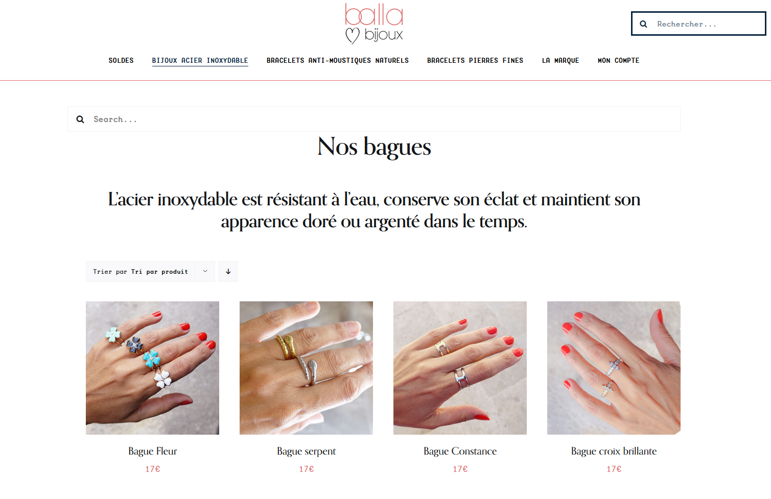 Parmi les nombreuses catégories proposées, les bagues de Balla Bijoux ont particulièrement attiré mon attention. Elles semblent être le cœur battant de la marque, représentant parfaitement leur engagement envers la qualité et le design unique.